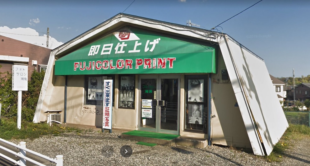 県道を鶴巻から東海大学方面に向かって坂を下りてカーブのあたりにあった奇抜な形の建物の写真屋がありました。